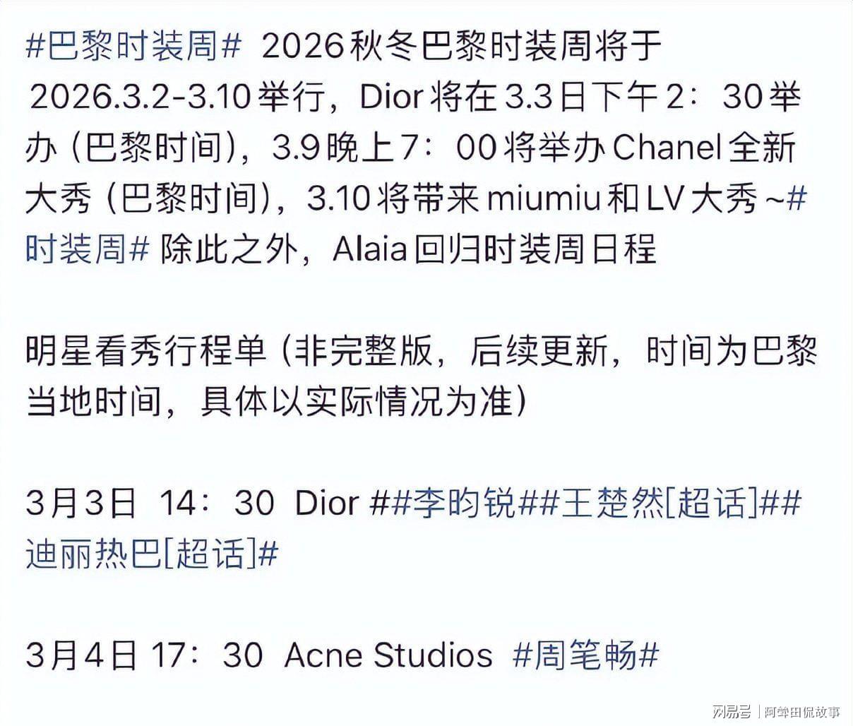 直到3月3日下午,工作室终于发声:因不可抗力因素,迪丽热巴目前已确定无法于法国巴黎时间3月3日抵达巴黎,不得不缺席时装周。